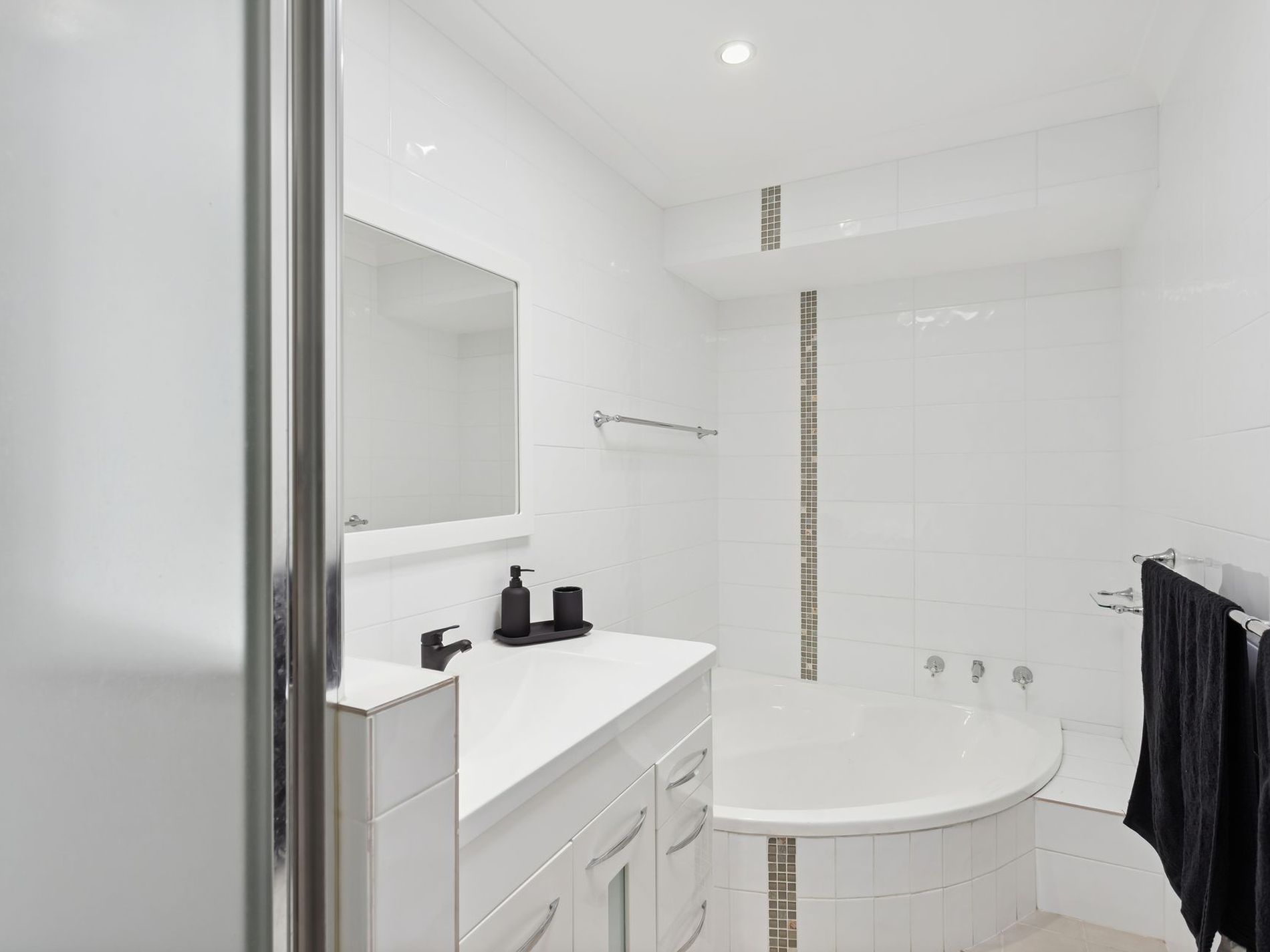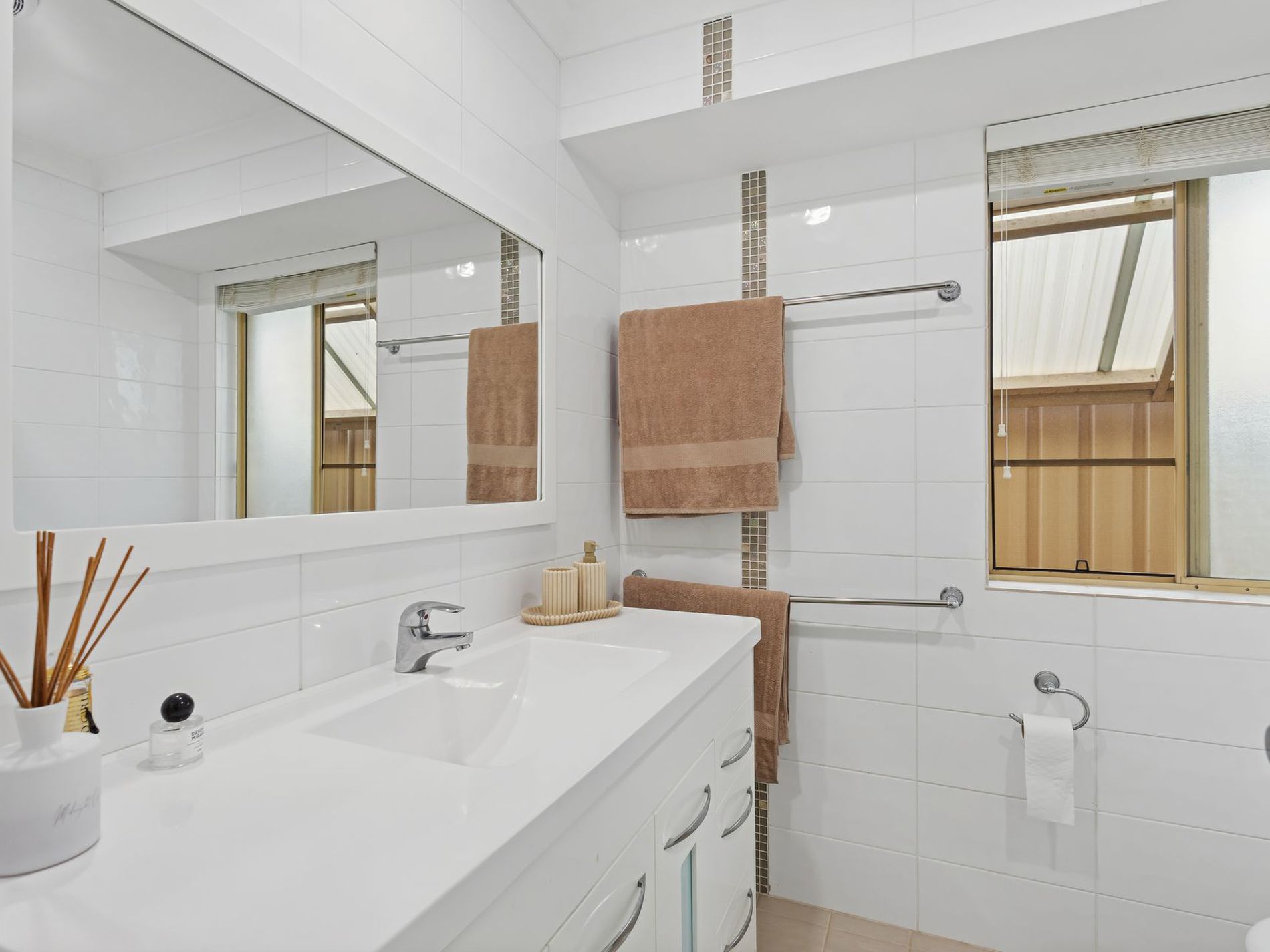 Modern bathrooms with floor-to-ceiling tiles, sleek vanities, and premium tapware